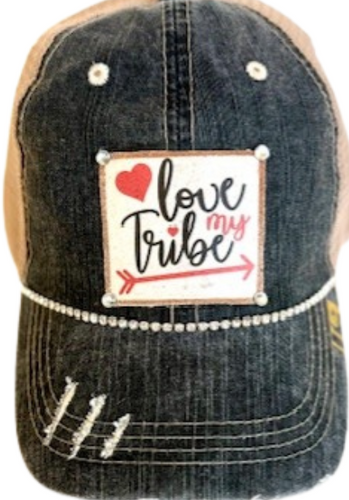 • "LOVE MY TRIBE" DISTRESSED TRUCKER HAT (#119)