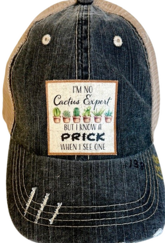 • "I'M NO CACTUS EXPERT" DISTRESSED TRUCKER HAT (#138)