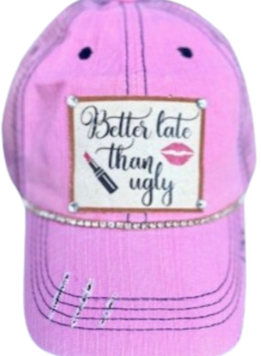 • "BETTER LATE THAN UGLY" DISTRESSED TRUCKER HAT (#155)