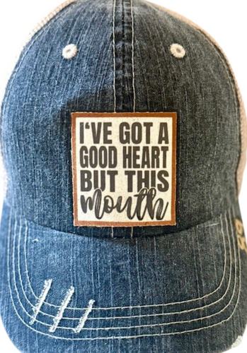 • "I'VE GOT A GOOD HEART BUT THIS MOUTH" DISTRESSED TRUCKER HAT (#89)
