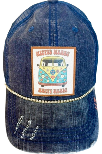 "HIPPIE HEART HAPPY HEART" DISTRESSED TRUCKER HAT (#117)