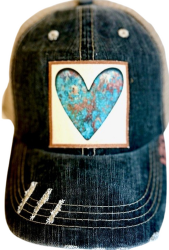 "BLUE HEART" DISTRESSED TRUCKER HAT (#120)