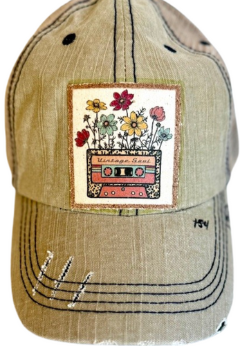 "VINTAGE TAPE WITH FLOWERS" DISTRESSED TRUCKER HAT (#130)