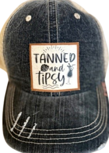"TANNED AND TIPSY" DISTRESSED TRUCKER HAT (#135)