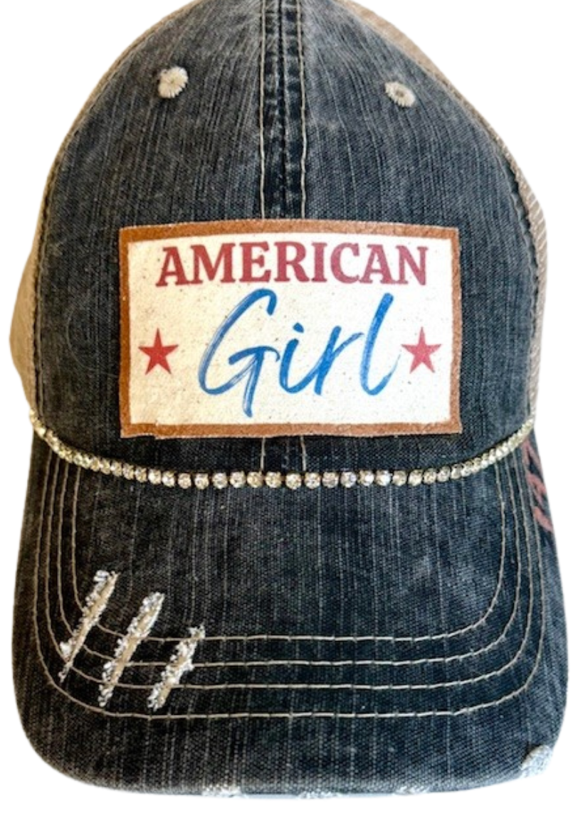 "AMERICAN GIRL" DISTRESSED  TRUCKER HAT (#147)