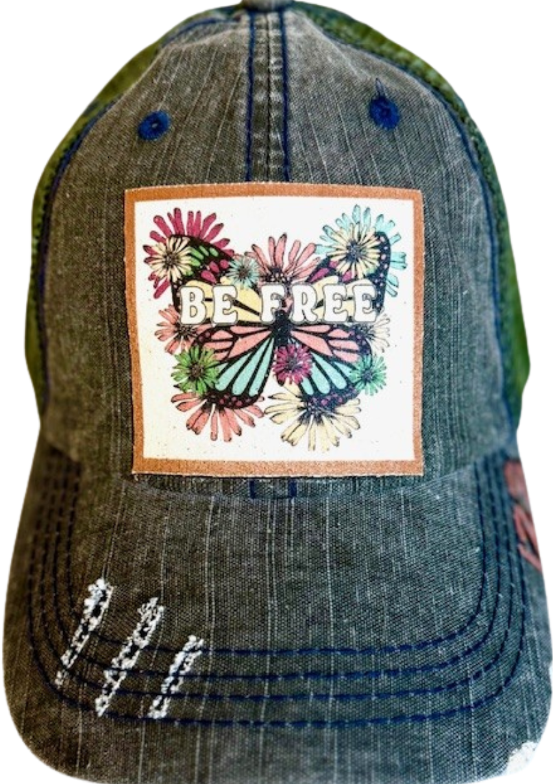 "BE FREE" DISTRESSED TRUCKER HAT (#123)