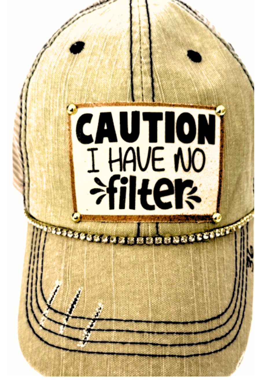 "CAUTION I HAVE NO FILTER" DISTRESSED TRUCKER HAT (#36)