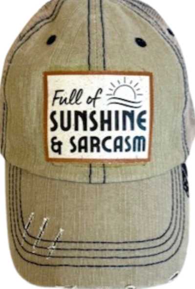 "FULL OF SUNSHINE & SARCASM" DISTRESSED TRUCKER HAT (#88)