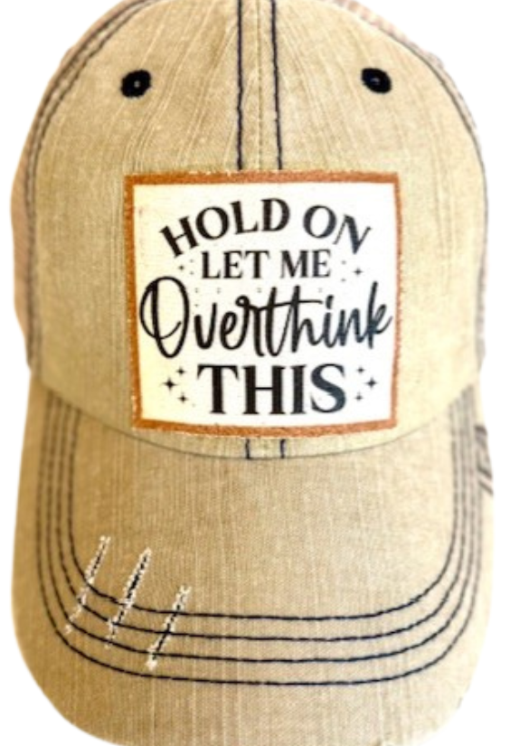"HOLD ON LET ME OVERTHINK THIS" DISTRESSED TRUCKER HAT (#154)