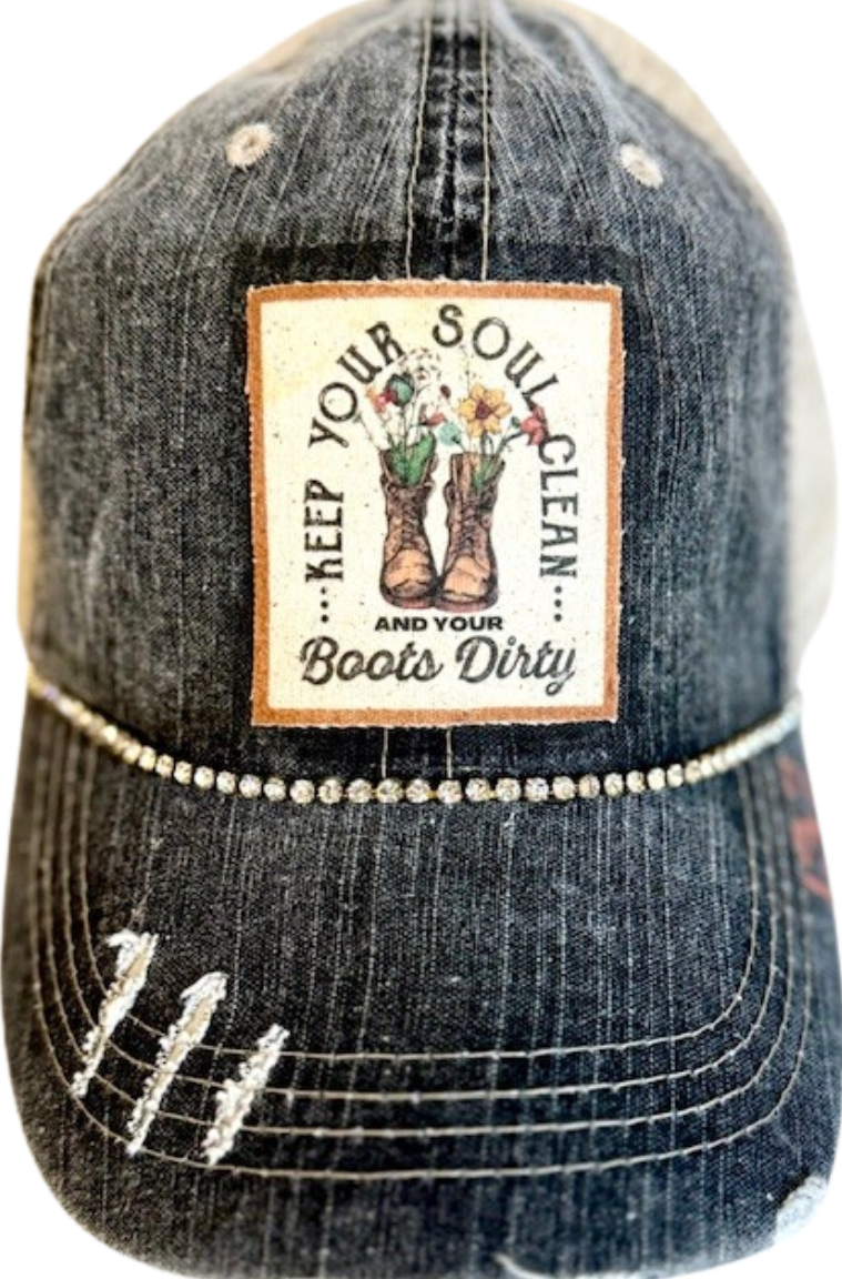 "KEEP YOUR SOUL CLEAN" DISTRESSED TRUCKER HAT (#132)