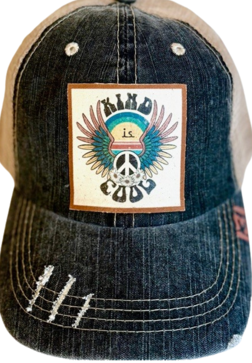 "KIND IS COOL" DISTRESSED TRUCKER HAT (#131)